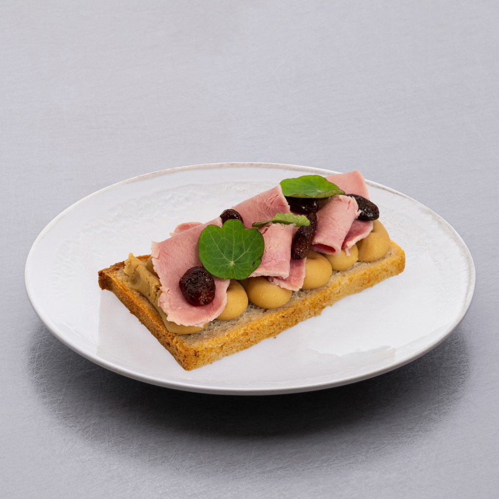 Chlebíček s pyré z kaštanů a kančím hřbetem