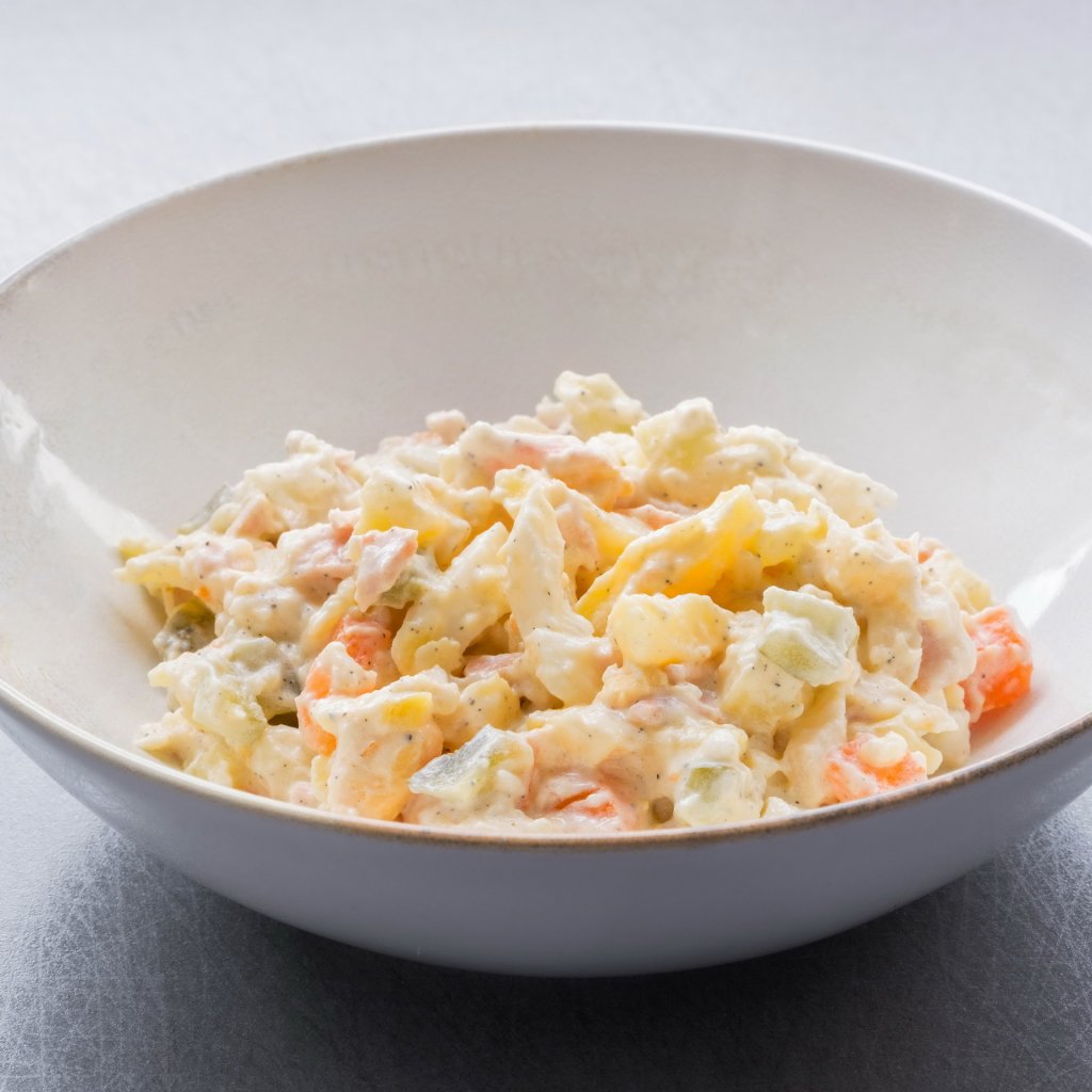 potato salad with root vegetables, ham, our home-made mayonnaise